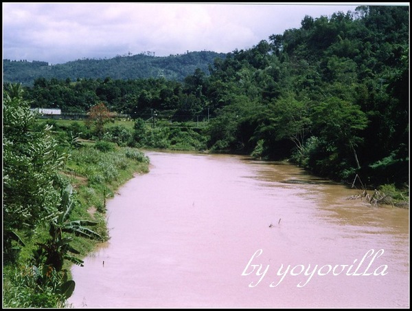 沙巴以熱帶叢林著名,但是那裡絕對不會適合小孩子去冒險。不去叢林或是小島的話,沙巴可以看得東西可說是少之又少。這裡據說是沙巴有名的河和吊橋,所以我盡本分的照了一張照片。事實上,根據我們弩力的觀察,感覺這條河很小,吊橋也沒特色,乏善可陳,唯有河水黃濁濁的比較特別。